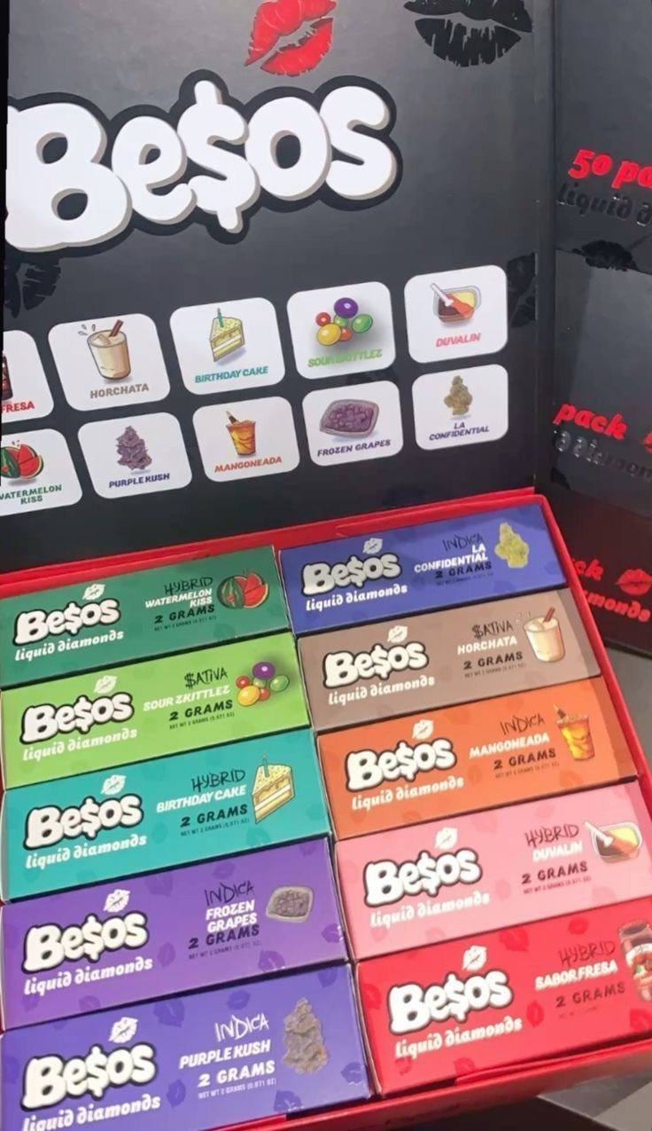 Besos offers a diverse variety of flavors, spanning fruity, sweet, dessert, and strain-inspired options. Availability may vary depending on your retailer.